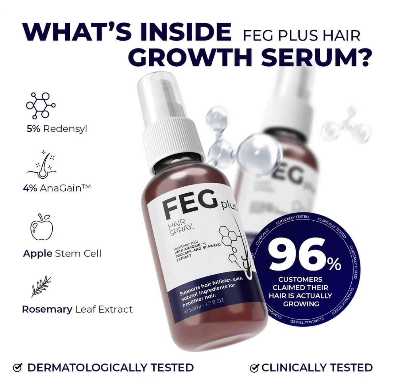 FEG PLUS Beard & Hair Growth Serum Spray Powered by Nature for Visible Results | Best Quality Hair Growth Spray – Hair Serum – 50 ml